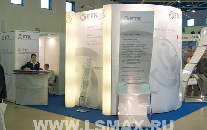 Мобильная экспозиция многоразового использования на основе ферменного конструктора Эспас декорированного ткани различного типа.